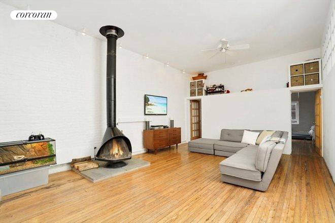 Note the ‘view’ out the living room windows: there isn’t much, as this is the back of the building, mid-block facing south and the back of buildings on Jay Street. It’s the master that gets the more open north views, including of the handsome #12 (on the right) and its handsome neighbor, with a gap of sky further left.
